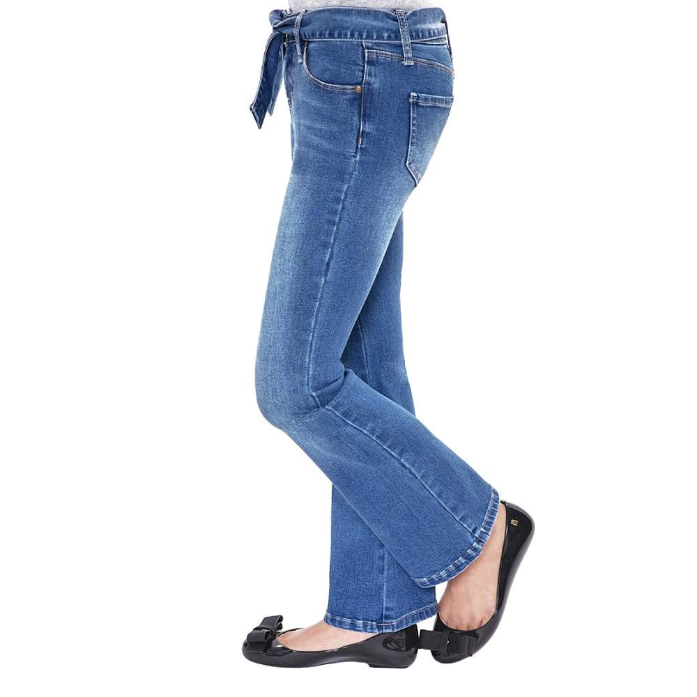 Our Girl's Flare Jean With Matching Jean Tie features two practical pockets on the front and two practical pockets on the back, matching adorable jean tie, single button closure with front zip, and belt loops.